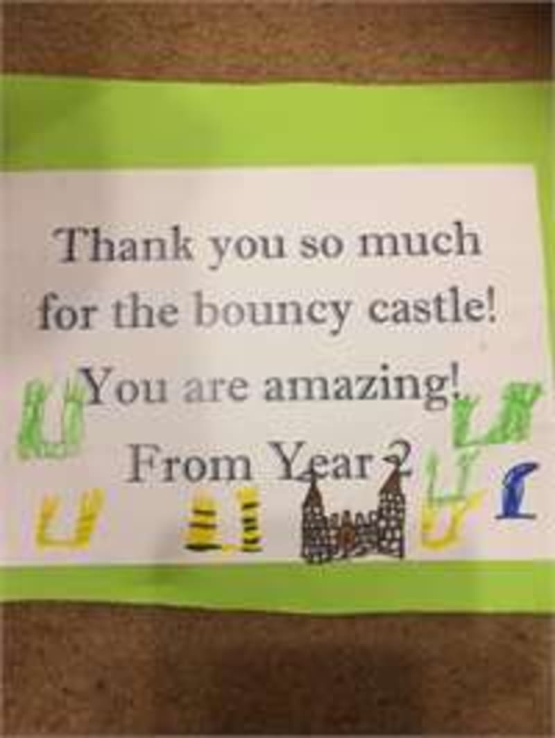 So pleased that we were able to help Edenham C of E Primary school with their Princesses and Knights banquet. We were delighted to support the children with our big [PRODUCT11]events bouncy castle[/]. The children all had an amazing time and loved the bouncy castle and we were so pleased to receive their hand made thank you card with their own interpretations of our lovely bouncy castles. What a lovely thought. :-)